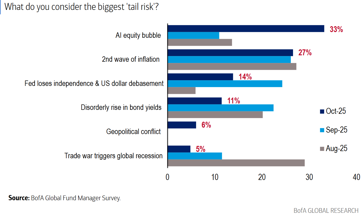 Dette begynder at ligne en strategisk fejltagelse i forhold til Tysklands beslutning om at stole på energi leveret af Rusland. I mellemtiden havde finansverdenen overbevist sig selv om, at dette ikke ville betyde den store forskel. Bank of Americas seneste månedlige undersøgelse af globale fondsforvaltere, udført lige før den seneste  strid brød ud, viste, at bekymringen om en handelskrig som en halerisiko næsten var forduftet. Det var det, der gjorde, at denne nyhed kunne have så stor en effekt – den ramte markederne, da de var på vagt: