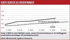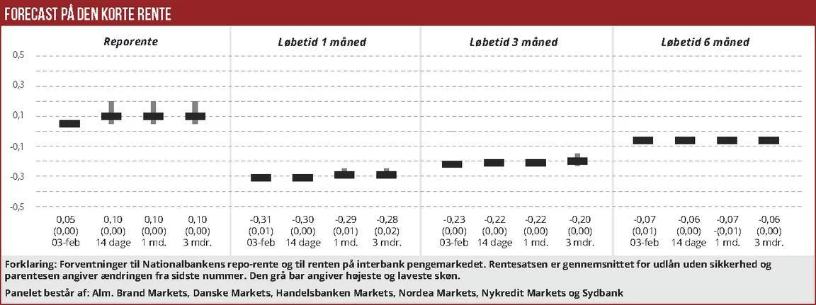 Der er forbløffende ro, når det gælder de helt korte renter. Ingen venter, at Nationalbanken rører renten i en ganske lang periode, og det påvirker markedsrenterne, der også foreløbig forbliver helt nede.