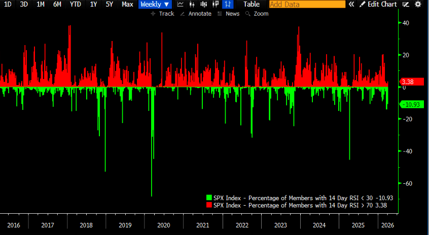We could see more pain | Only around 11% of SPX constituents are oversold. |  Bloomberg/GS |