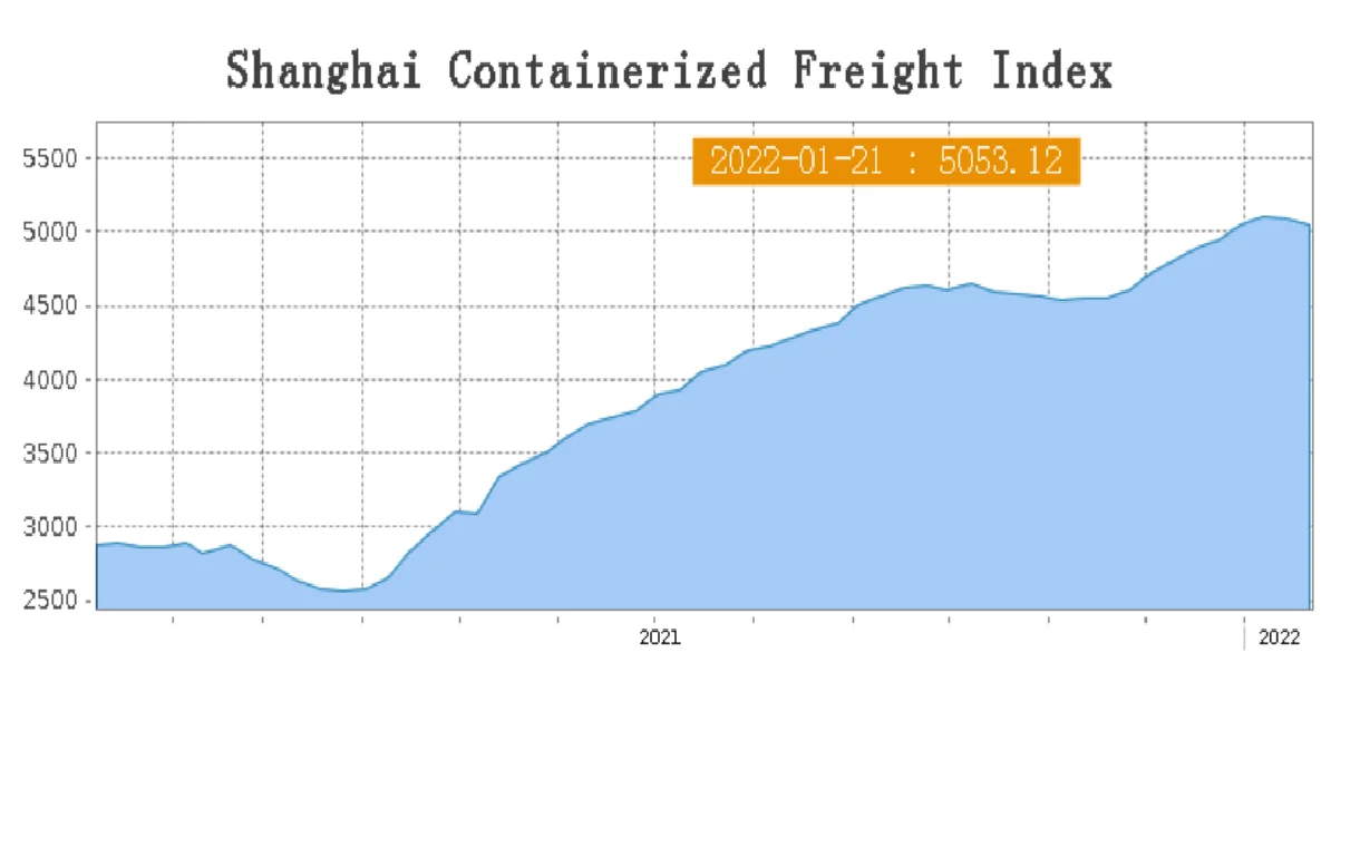 Grafik: for første gang siden medio 2020 viser de internationale containerrater en vigende tendens, hvilket kan afspejle mindre pres på containertrafikken.