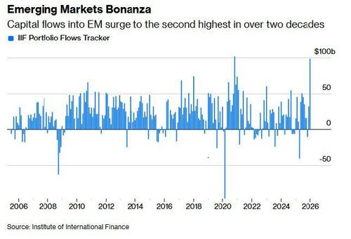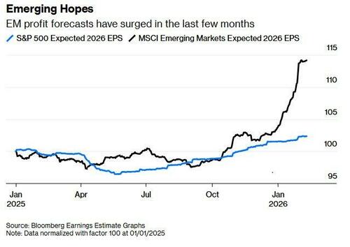 Putting it all together, the JPM market intel team reaffirms its latest monetization menu (from Feb 9), which stated a preference for core themes that JPM has written about YTD, namely (i) AI / TMT; (ii) Global Growth Reboot; (iii) International Plays; and (iv) Dollar Debasement; here, it would emphasize the Global Growth Reboot and International Plays given liquidity tailwinds coming from China and Japan. The bank also likes upside in crude and Energy Equities to hedge geopolitical risk, and likes portfolio hedges of buying vol, shorting Momentum factor, and shorting one or more of the JPMorgan Delta-One team’s squeeze baskets.