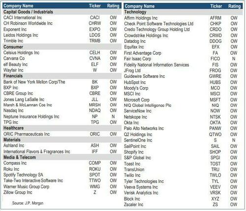 Finally, the Market Intel desk is trading the upcoming bounce by going long a basket of what it sees as the most mispriced stocks, which are “most insulated from AI disruption.” The members are listed below.