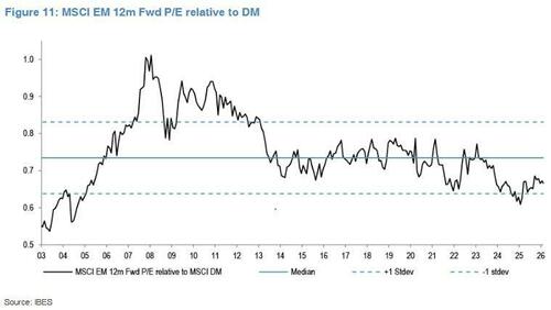 For investors playing the US performance recover, Market Intel thinks it prudent to retain an Int’l / EM allocation, even though emerging markets are now clearly at the top of historic ranges, despite a surge in expected EPS.