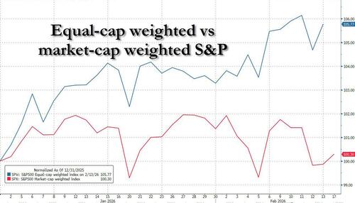 There is one notable difference in the Feb 17 note however: the bank says that while there were no changes over the past week, Market Intel thinks “we are getting closer to end of the ‘AI Obsolescence’ narrative, suggesting a dip-buying opportunity within MegaCap Tech”.