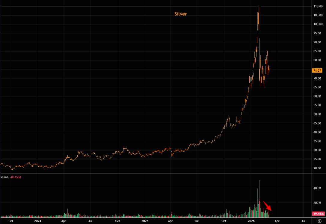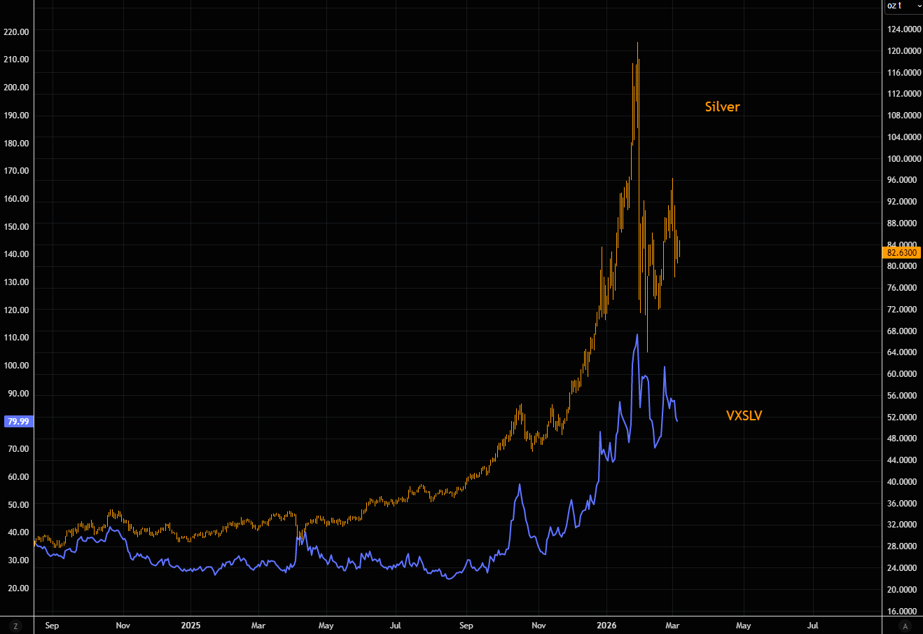The massive SLV volume surge is now just a memory. Dwindling volumes, but still elevated vols, will make price discovery hard.