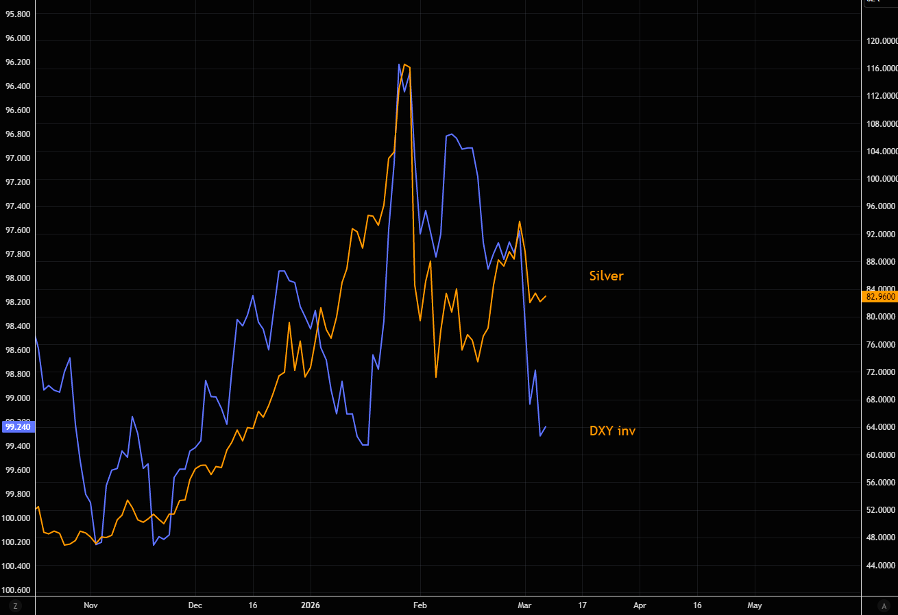 Den seneste styrkelse af den amerikanske dollar har heller ikke været indregnet i mange investorers forventninger. En stærkere dollar er traditionelt negativ for råvarer prissat i dollar, herunder sølv, fordi det gør metallet dyrere for investorer uden for USA.
