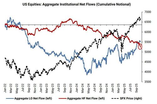 HFs net sold US equities at the fastest pace since early April, driven by short sales in Macro Products and Single Stocks.