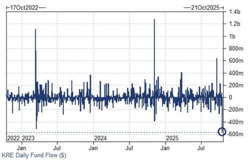 As regional banks sold off on Thurs, KRE faced over half a billion dollar in outflows – its largest redemption over the past few years that include the 2023 regional bank crisis.