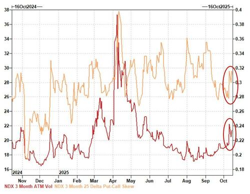 Call skew remains inverted in many names with AI-exposure, making 1×1 call spreads or ratios look attractive.