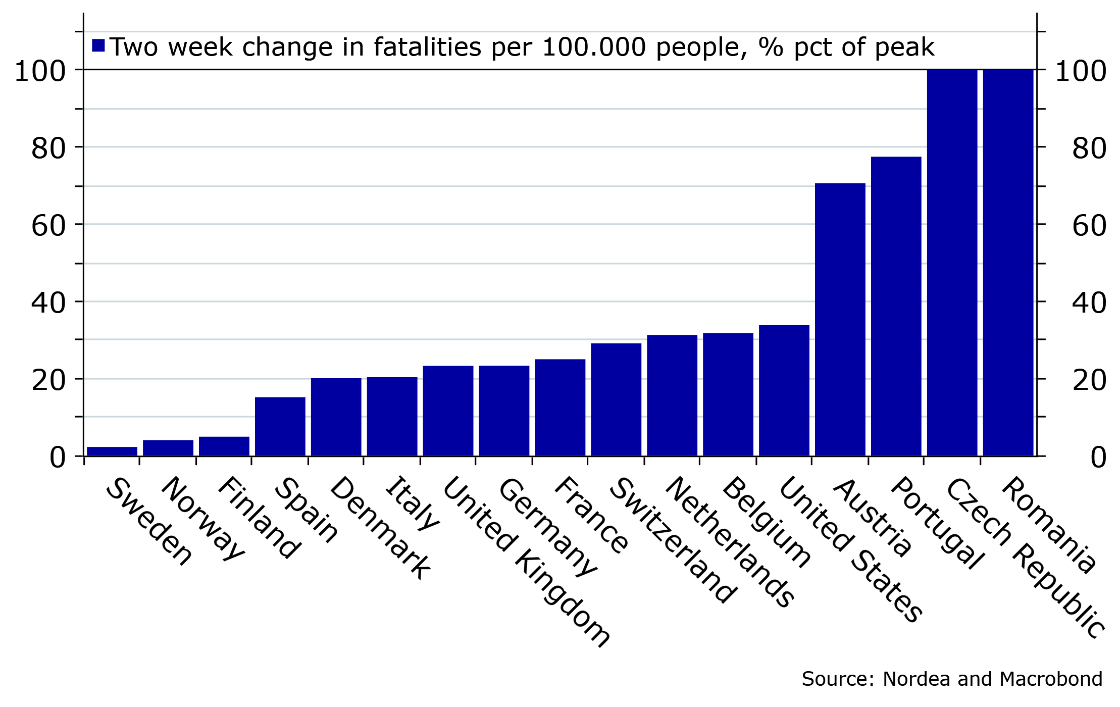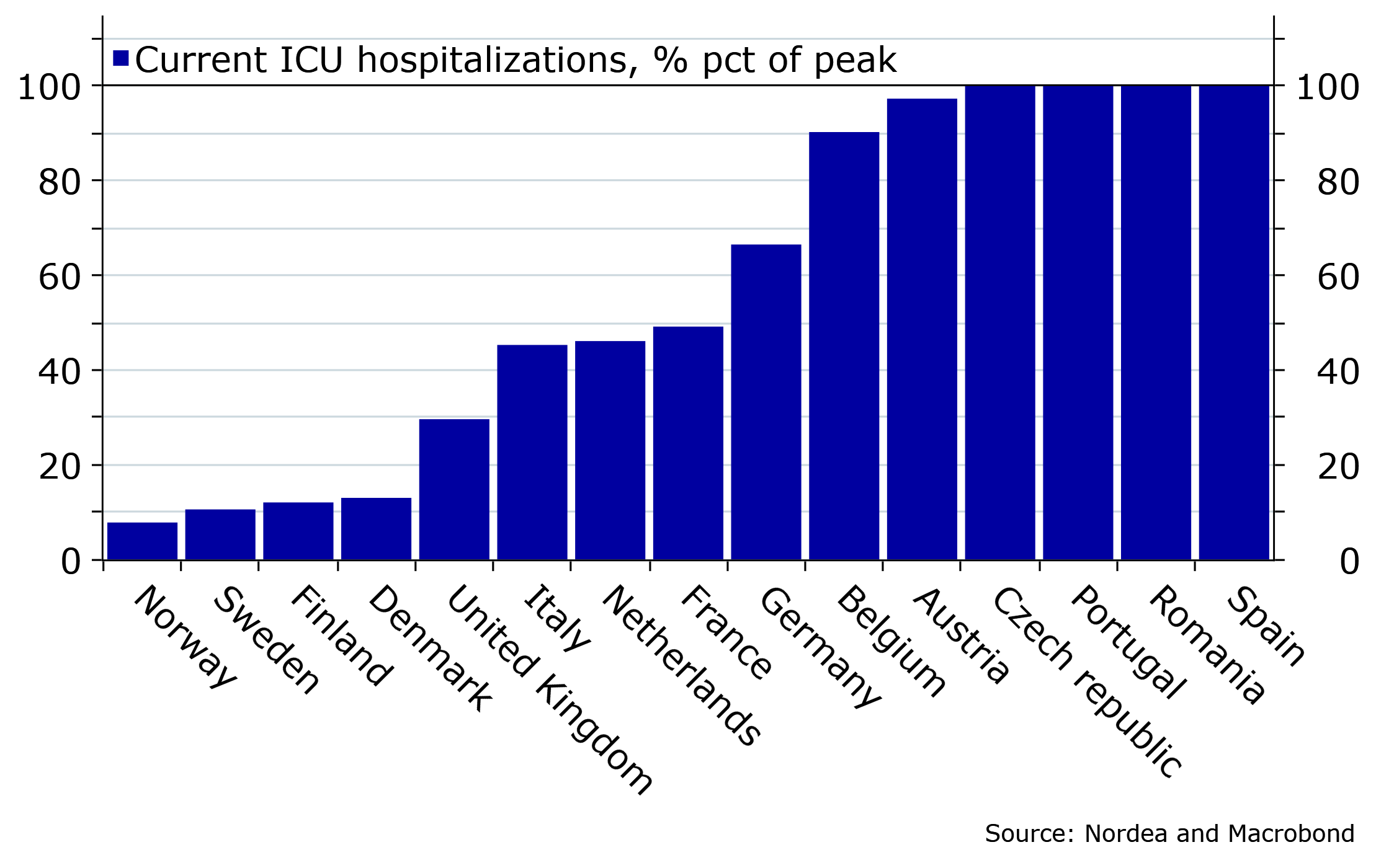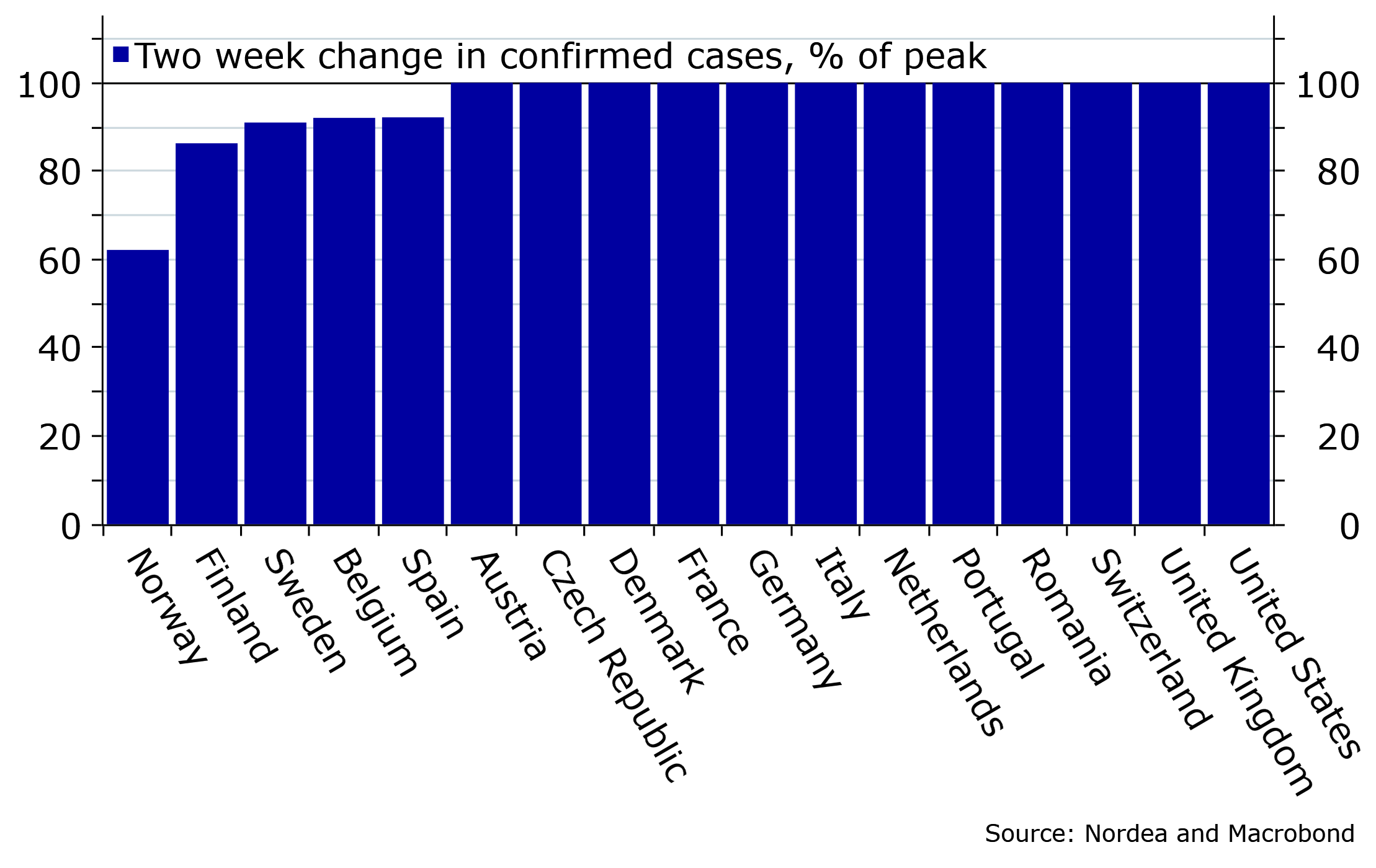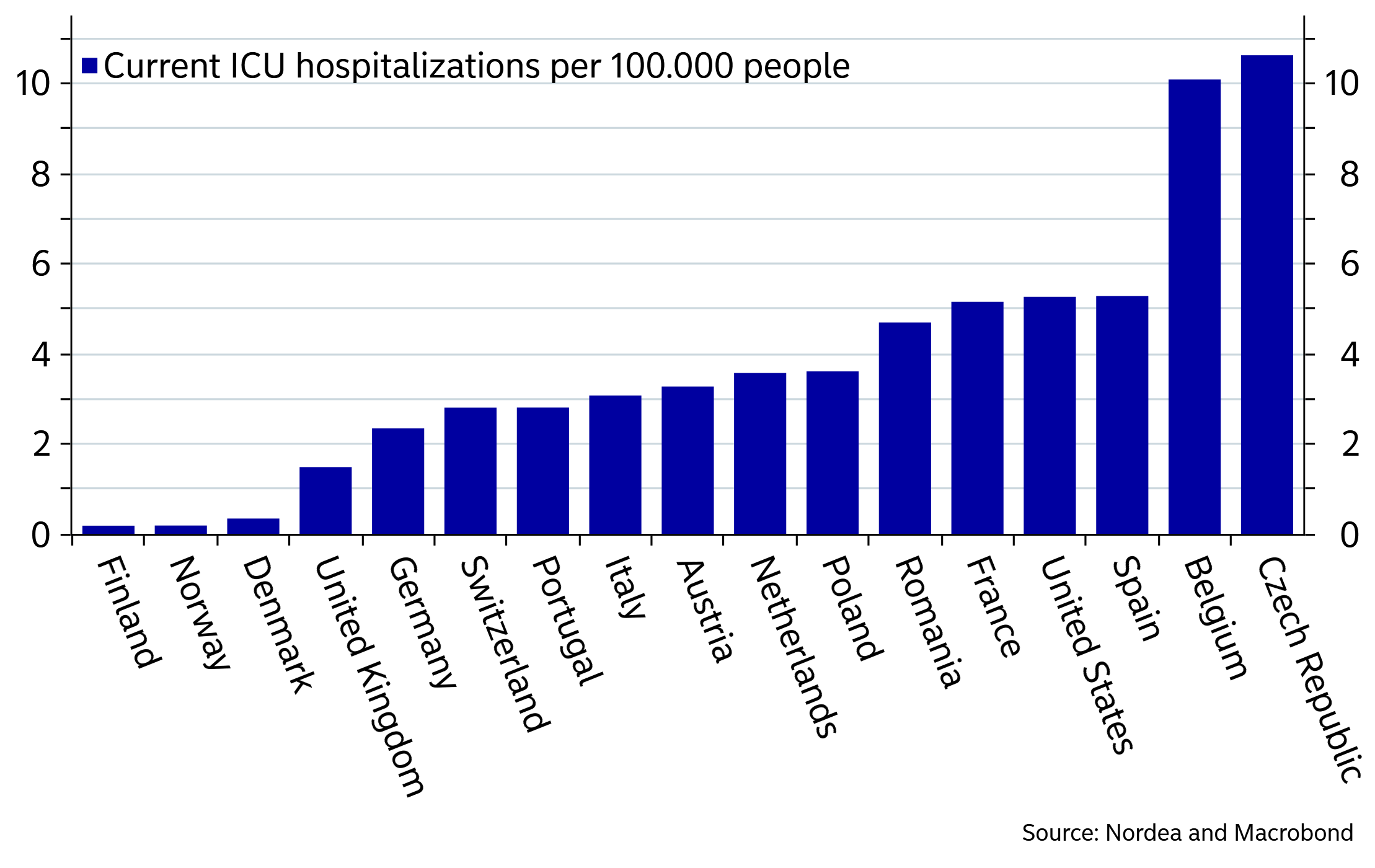 Nordea viser i en række grafer, at coronatilfældene er eksploderet i ganske få europlæiske lande, med Belgien og Tjekkiet i toppen, og det står i skærende kontrast til især de nordiske lande. Men selv Italien ligger pænt i feltet.