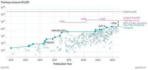 Source:Ege Erdil, and David Schneider-Joseph. ‘Data movement limits to frontier model training’. ArXiv [cs.DC], 2024. arXiv. https://arxiv.org/abs/2411.01137
