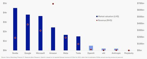 The price to sales ratio of OpenAI is 38 and Anthropic is 44, vs Nvidia at 22, Microsoft at 12, Google at 9.9 and Amazon at 3.5