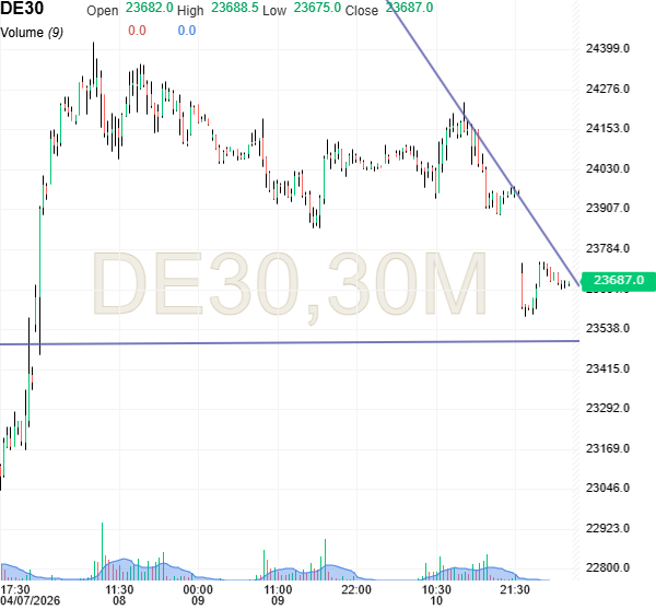 Kursgraf: Den tyske DAX future er aktuelt nede knap halvanden procent, risiko for yderligere kursfald