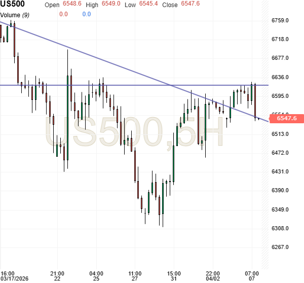 Kursgraf: Det styrende amerikanske aktieindeks S&P Future er aktuelt en procent nede. Teknisk står en vigtig støttelinje for fald.