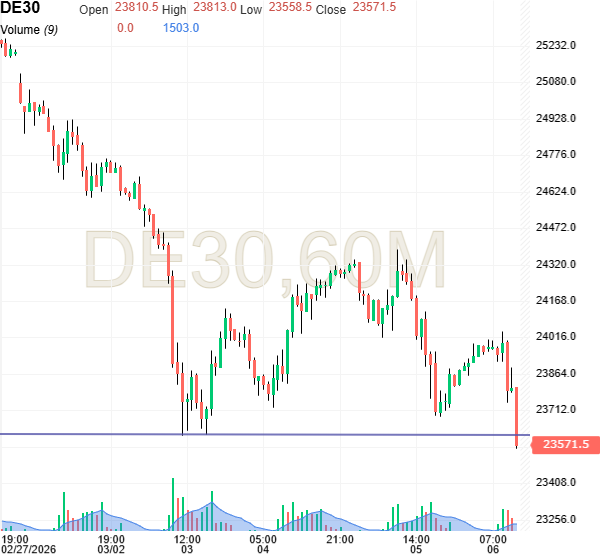 Kursgraf: Den tyske DAX aktiefuture er på vej under en vigtig støtte
