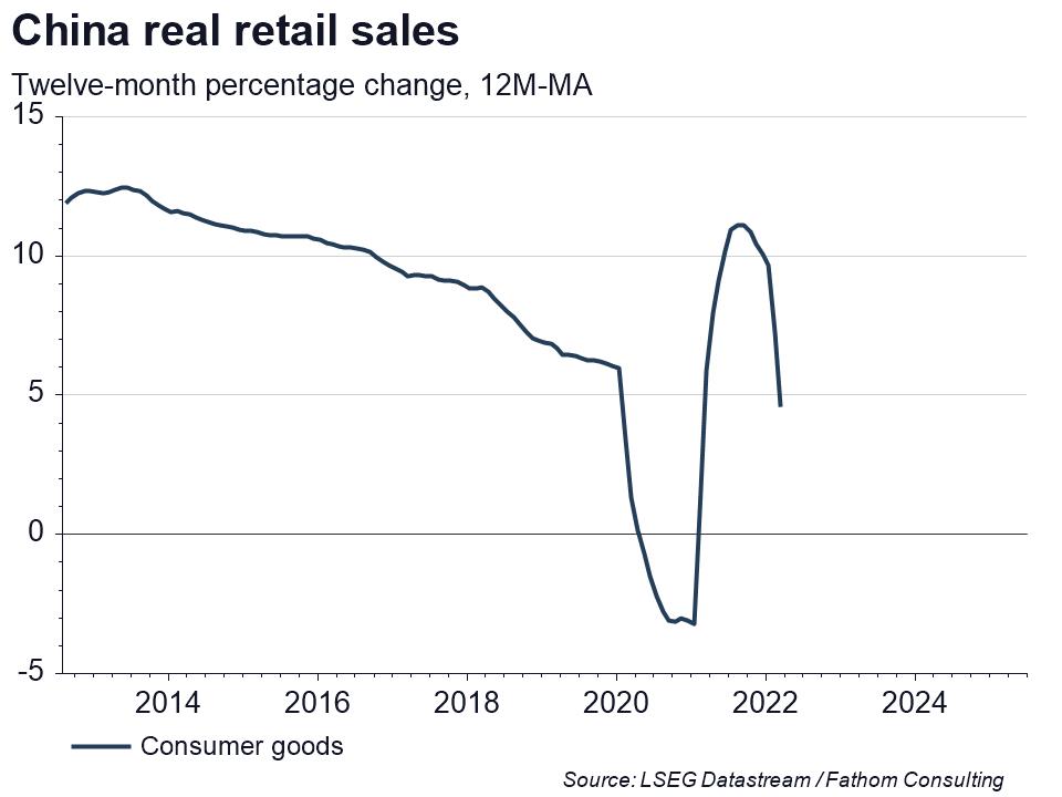 Other measures of consumer demand also point to a diminishing appetite. For example, official data reveal that there has been a marked contraction in Chinese import demand, with consumer goods imports falling 12.4% in the year to November on a 12-month summed basis.