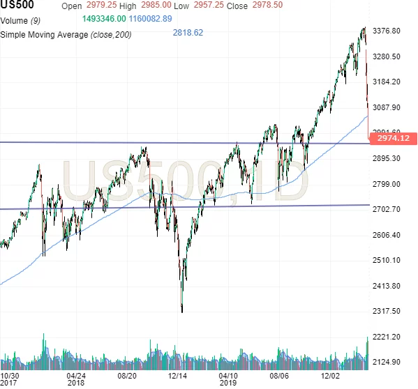 Kursgraf: S&P Future har nu nået 3.000 niveau, som burde være en solid støtte. Næste test kan blive 2700 niveau.