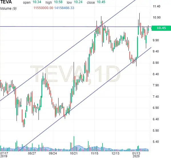 Kursgraf: Teva aktien holder sig fortsat i den stigende trendkanal