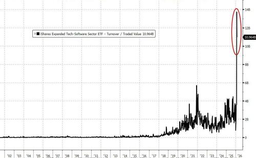 Headline indices held-in for most the week, despite a violent rolling rotation amid ongoing fears & the threat of AI-led disruption across ever-widening pockets of the market; but that was until Thursday when risk assets broadly legged lower on notably high turnover (S&P500 and gold futures volumes running 3x & 6x average volumes).