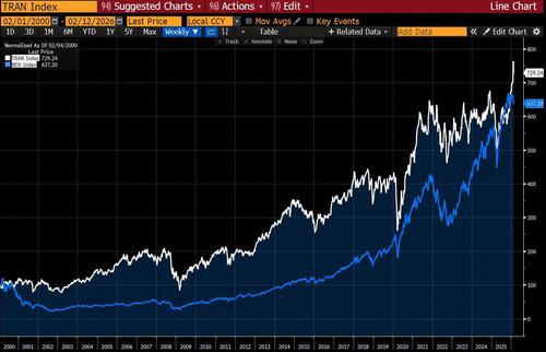 4/ given what a headline grabber US tech has been for 15 years, its pretty staggering to consider the Dow Transport index has handily outstripped Nasdaq over the last 25 years (yes I know, starting points really do matter – on both sides of the balance sheet, which makes this current period all the more interesting given extreme valuation disparities across regions & sectors) :
