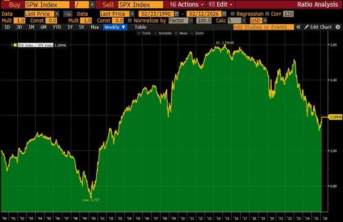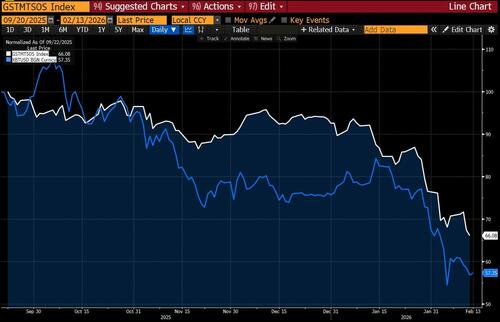 With that in mind, top Goldman Sachs trader, Mike Wilson, explained in his latest ‘weekly mash’ that he suspects we’re approaching the end of this innings of AI-risk seek-and-destroy, but don’t expect a fast multiple re-rate, nor much change to the broad themes that are becoming increasingly clear.