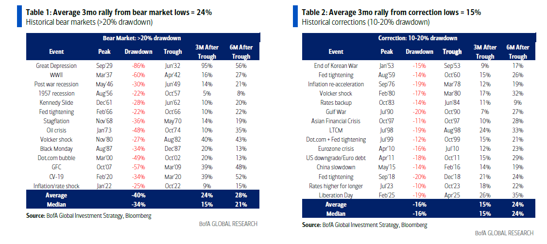 Yet big corrections are always followed by big rallies: in the past 100 years, 15 big “corrections” (i.e. SPX down 10-20%) and as shown in the table below, the average 3-month rally from lows = 15%… but S&P500 still not in “correction” territory, won’t be until breaks 6.3k… which as of the Friday close is less than 100 points away.