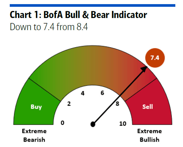 The BofA Bull & Bear Indicator is down sharply from 8.4 to 7.4 (lowest level since Jul’25) on deteriorating global stock index breadth, outflows from HY bonds and EM debt, wider credit spreads (HY and AT1 bonds); as such the BofA Bull & Bear Indicator contrarian “sell signal” ends (since Dec 17th SPX -5%, peak-to-trough -7%).