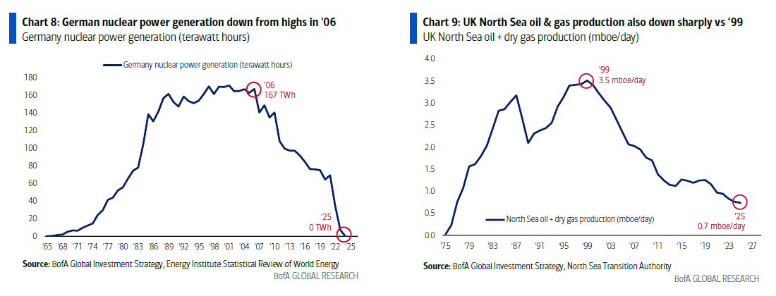 Hartnett’s Case: the BofA strategist assumes a policy panic is now assured to avoid recession: as such, the best trades are long yield curve steepeners & consumer stocks; and while “no rush, no greed” but gold & international bulls to resume on coming US dollar bear market and RoW fiscal excess (poor Europe: so much to spend on defense and now on energy after giving up domestic energy sources, e.g. German nuclear and UK oil & gas from North Sea);