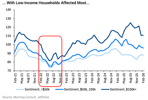 “History suggests oil shocks do not hit the consumer evenly,” the analyst said.