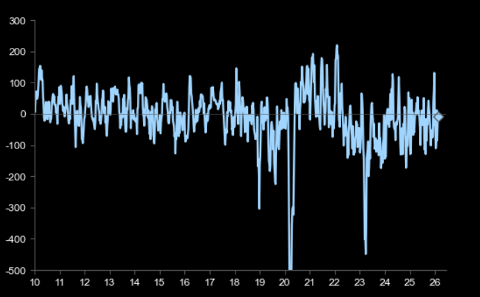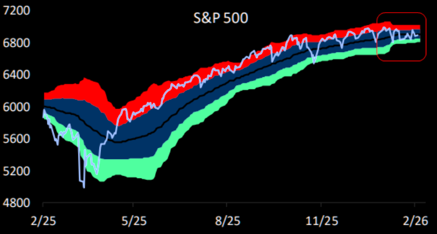 Buybacks remain in full swing as last week finished 1.7x vs. 2025 YTD ADTV and 1.5x vs 2024 YTD ADTV. Buybacks remain a tailwind for US equities into mid-March and taper off from there.