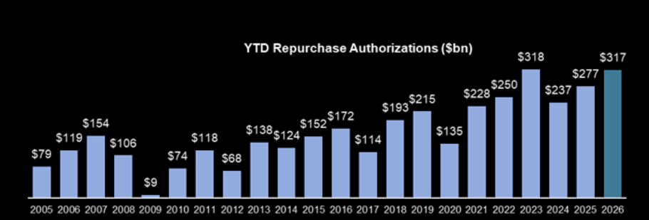 In terms of authorizations, 2026 YTD authorizations are the 2nd most active standing at $317B, just behind 2023 YTD which was $318B.