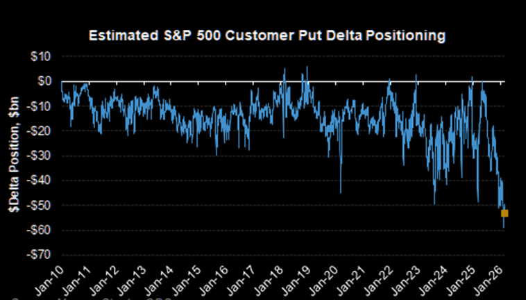 Investors currently hold nearly the largest amount of S&P 500 put protection as they ever have.