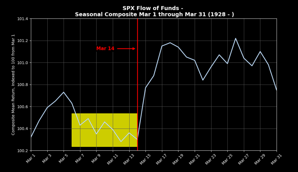 GS: “March tends to be a soggier month for the S&P historically as the first half faces choppy price action downwards but ultimately sees an average return of 30 bps from March 1 to March 14th.”