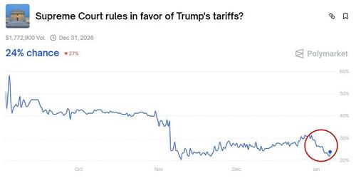 Prediction markets suggest a mere 24% chance that Trump’s tariffs are upheld…