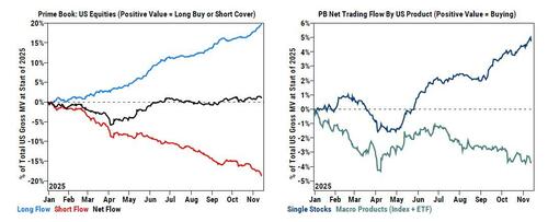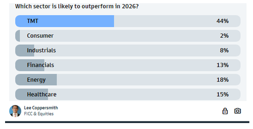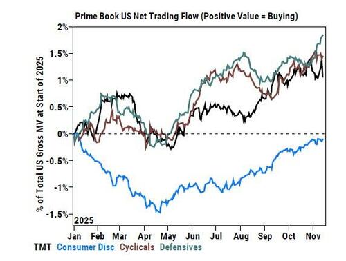- The tone the week ahead prep is unintentionally bearish the technology sector: this flow comes in sharp contrast to a Goldman sentiment poll where almost 50% of respondents expect TMT to be the leading sector 12 months from now.