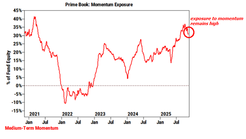 - Thematics (wow): three weeks ago, Goldman highlighted the fact that GS custom baskets have been significantly more volatile than the market itself … this spread culminated on Thursday with a 750bps one day sell off in the momentum index; here, the Goldman derivatives team worries this could spill into something more precarious (beta + momentum hedge ideas here); yet despite the anxiety (and negative performance) investor exposure to momentum remains very high.