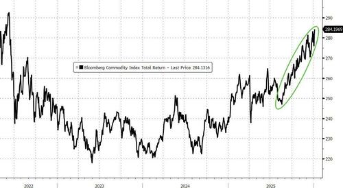 Råvarer springer ud . Investorer ser ud til at lede efter værdiskabende beholdninger, da det finanspolitiske pres er ukontrolleret, med en ekstra interventionsrisiko, der føles højere end på noget andet tidspunkt i nyere tid.