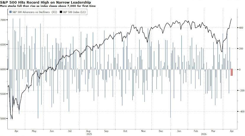 Only ~12 stocks in the SPX are at 52 week highs while the index is at 52 week highs. There have only been a handful of similar readings, mostly late 90s / early 2000s.
