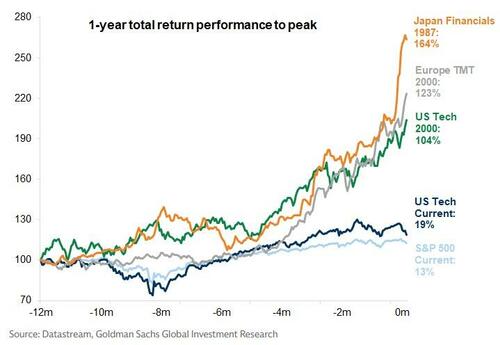 Tidligere bobler oplevede meget større aktiekursstigninger i deres sidste år…