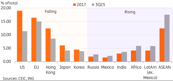 De-risking has caused a major shift in China’s export structure away from the US