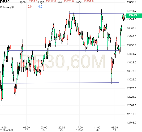 Kursgraf: Den tyske DAX Future har igen nået loftet i den vandrette kanal, som har defineret udsvingene den seneste halvanden måned.