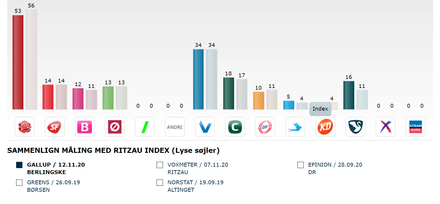 Kilde: Gallup/ Berlingske/ Ritzau / antal mandater