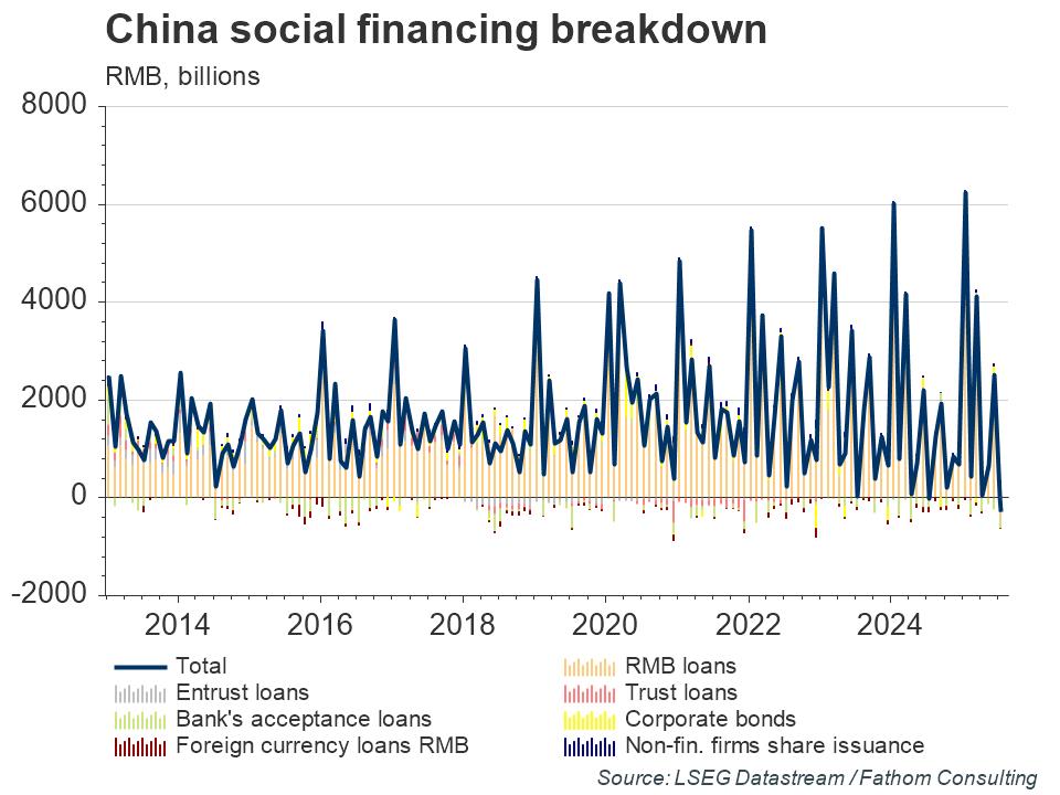 Meanwhile, the final component of our CMI, nominal bank lending, expanded by 15.6% in the twelve-months to October. Even so, this proved insufficient to offset the contraction in shadow-based financing, causing total net lending (known as social financing) to dip to its lowest level in fifteen months.