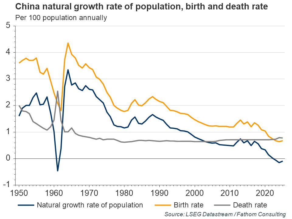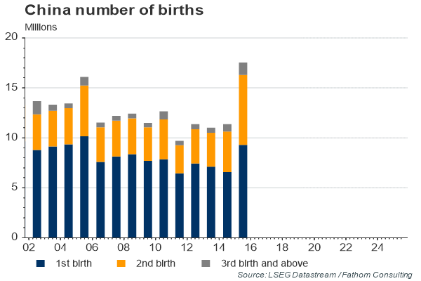 Replacing what was left of the one-child policy with a two-child policy will not solve China’s demographic problems. These are deep rooted, and were in train long before the one-child policy was introduced, as our final chart shows. The latest changes are marginal – China has not had a strict one-child policy for more than 30 years. And of course, they will not affect the size of China’s labour force for the best part of 20 years.