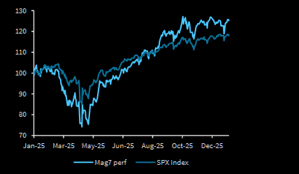 “Forholdet mellem S&P 500 Magnificent-7 ETF (MAGS) og Impressive-493 ETF (XMAG) toppede på et rekordhøjt niveau på 3,09 den 3. november, få dage efter at Michael Burry ødelagde AI-handelen i et opslag den 27. oktober. Det er nede på 2,76 omkring middag torsdag. Salget af både Mag-7 og, mere generelt, tech-sektoren kan være ved at blive lidt overdrevet. Der er helt sikkert AI-relaterede tech-aktier, der vil tjene mange penge på dette område.”