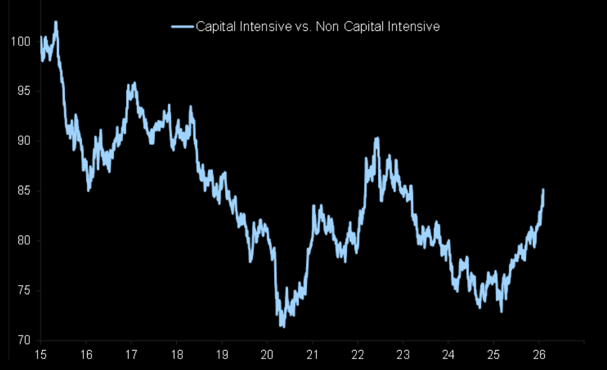 Signifikant kortsigtet vending i kapitalintensiv vs. ikke-kapitalintensiv (diagram 1) efter 16 år med hysterisk envejs-overperformance (diagram 2). Hvilken ville du satse på på længere sigt?