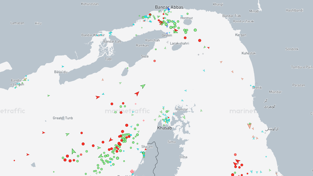 Aktuelt billede af trafikken omkring Hormuz Strædet