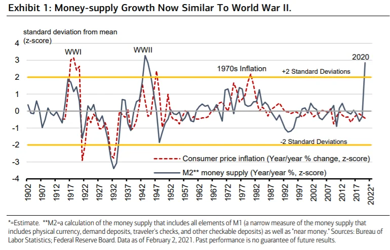 Prior to 2020, the episodes of the most extreme money growth in the 20th century were