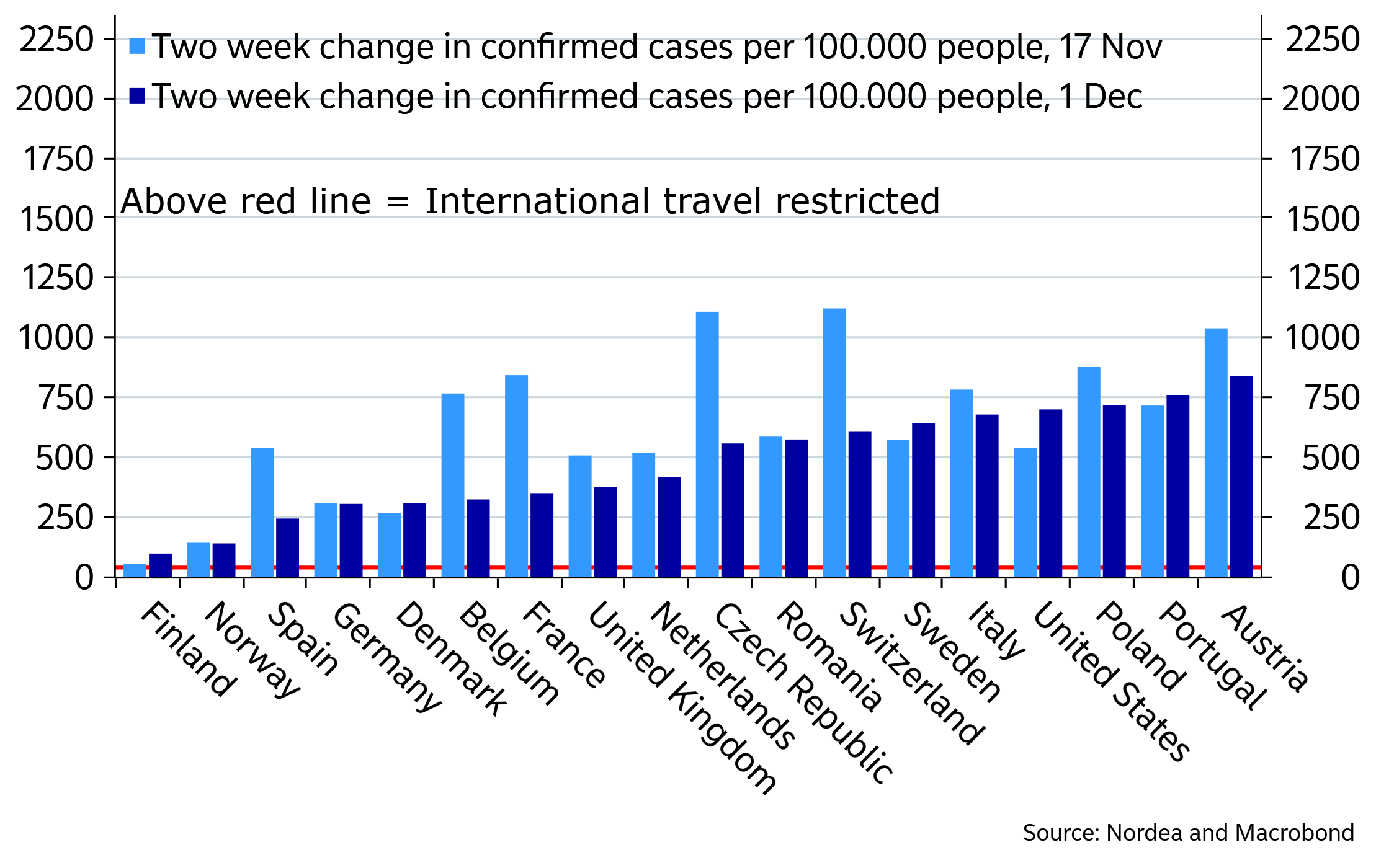 Chart 1. Change in case count per 100.000 people over the past 2 weeks