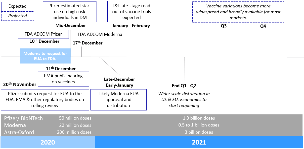 The vaccine is coming. As its been a few weeks since Pfizer/BioNTech & Moderna released the late-stage vaccine results, we reflect on a possible vaccine timeline.